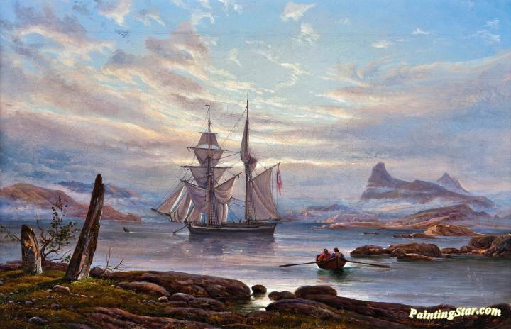 Bautastener På Nordnes Ved Fimreite I Sogn, Art Painting by Franz Wilhelm Schiertz