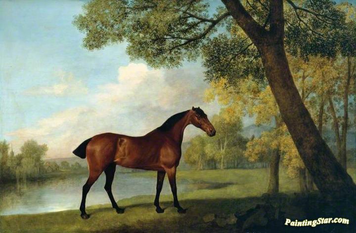 Bay Hunter By A Lake, Art Painting by George Stubbs