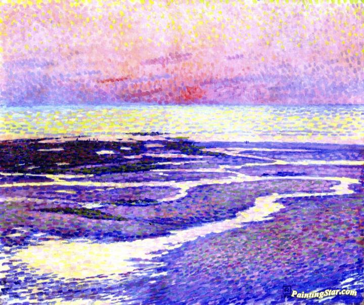 Beach at Low Tide: Evening, Art Painting by Theo van Rysselberghe