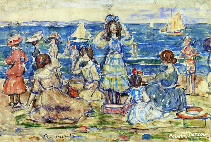 Beach Scene with Boats, Art Painting by Maurice Prendergast