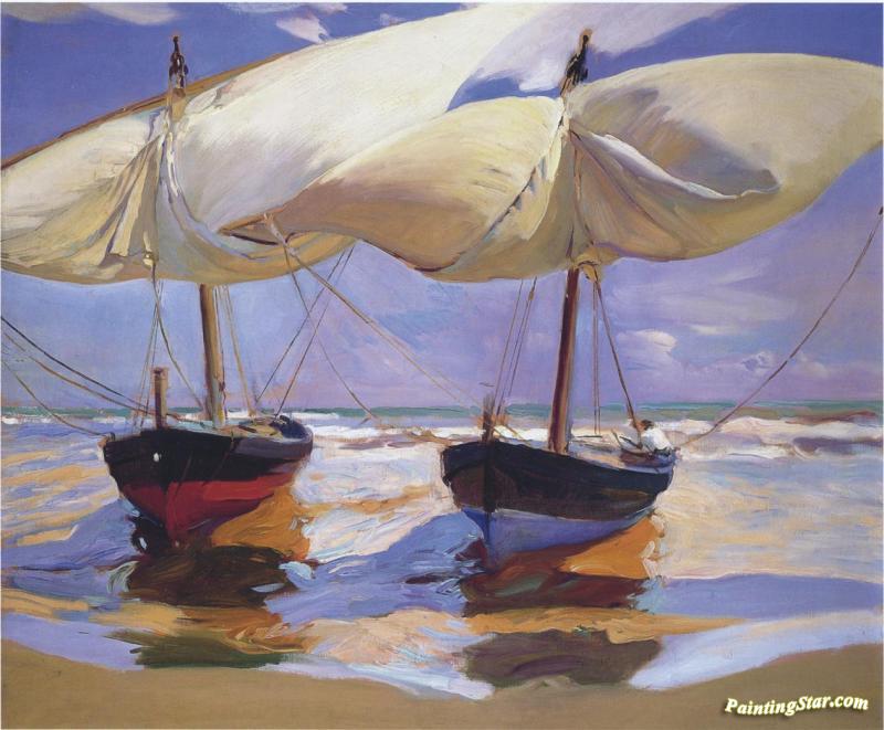 Beached Boats, Valencia, Art Painting by Joaquin Sorolla y Bastida