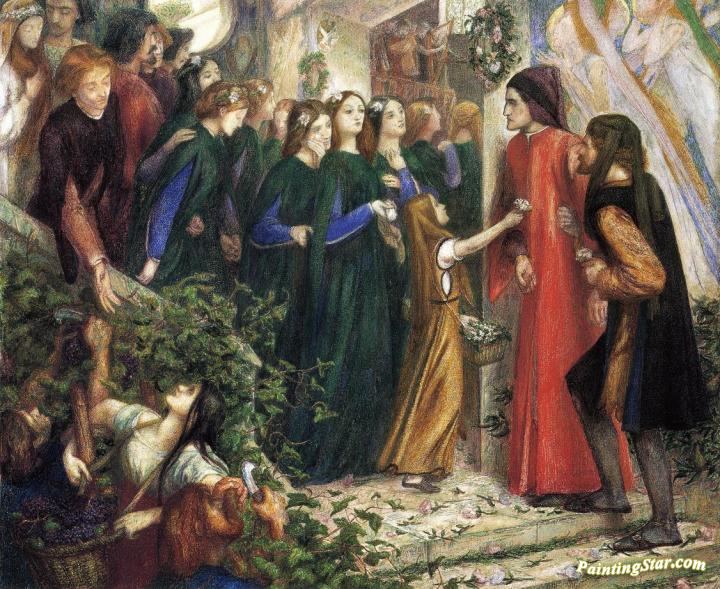 Beatrice, Meeting Dante at a Wedding Feast, Denies him her Salutation, Art Painting by Dante Gabriel Rossetti