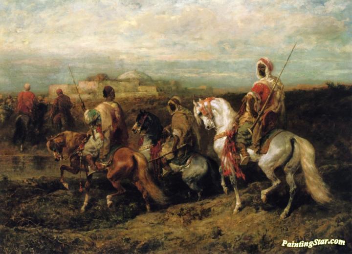 Bedouins Approaching a City, Art Painting by Adolf Christian Schreyer