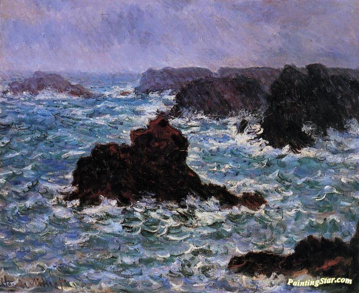 Belle-Ile, Rain Effect, Art Painting by Claude Oscar Monet