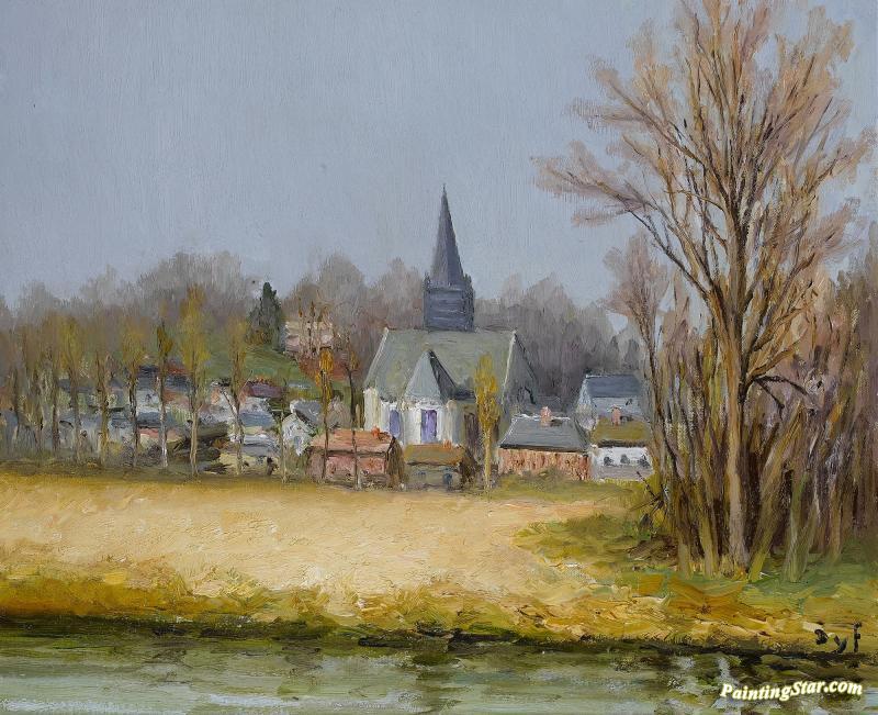 Belltower By The River, Art Painting by Marcel Dyf