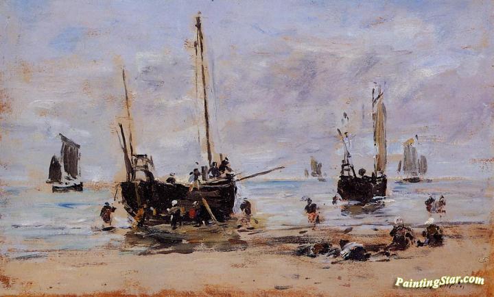Berck, Fishermen at Low Tide, Art Painting by Eugène-Louis Boudin
