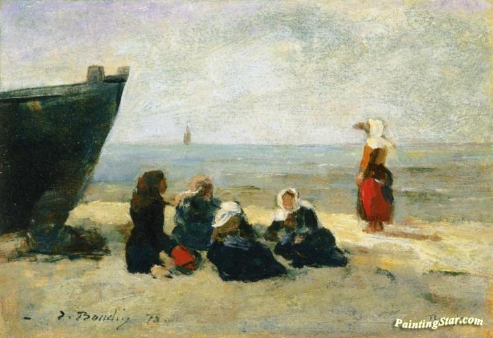 Berck, Fisherwomen Looking for the Return of the Boats, Art Painting by Eugène-Louis Boudin