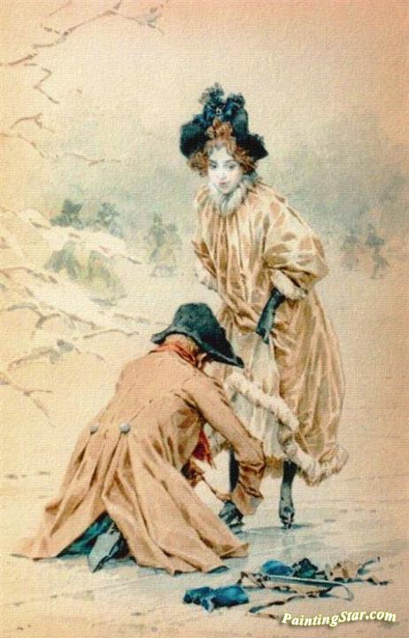 Binding skates, Art Painting by Frederik Henrdik Kaemmerer