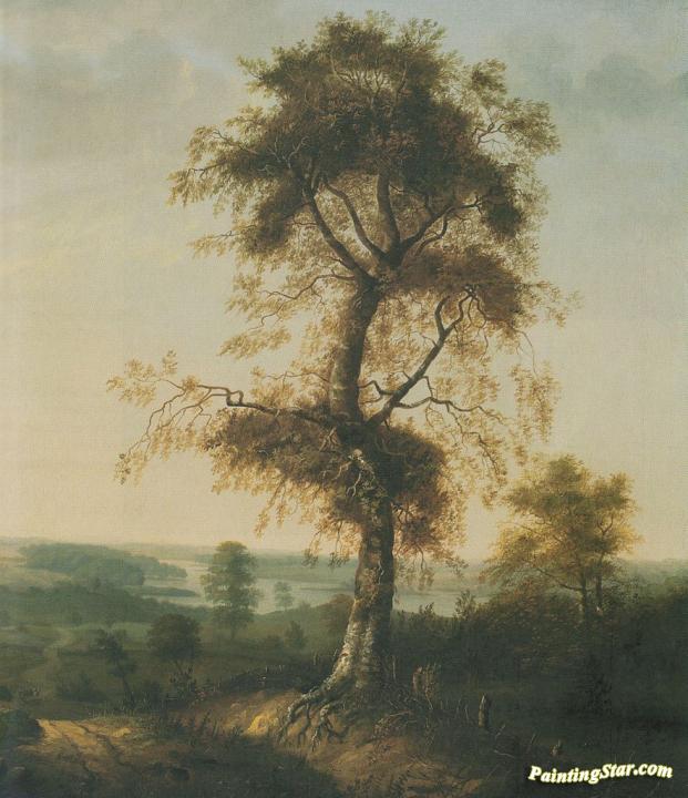 Birch in Autumn Landscape, Art Painting by Johan Christian Dahl