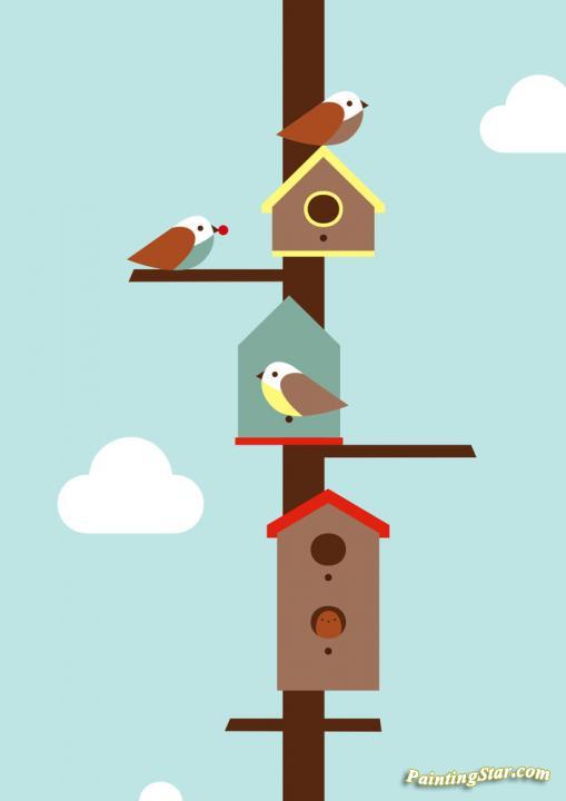 BIRDHOUSES, Art Painting by Dicky Bird