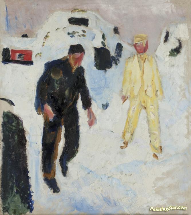 Black And Yellow Men In Snow, Art Painting by Edvard Munch
