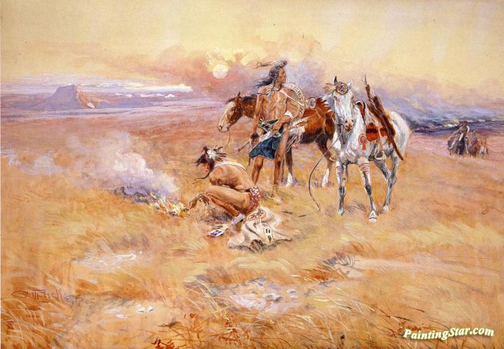 Blackfeet Burning Crow Buffalo Range, Art Painting by Charles Marion Russell