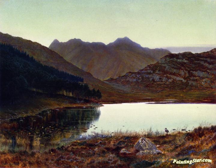 Blea Tarn, First LIght, Langdale Pikes in the Distance, Art Painting by John Atkinson Grimshaw