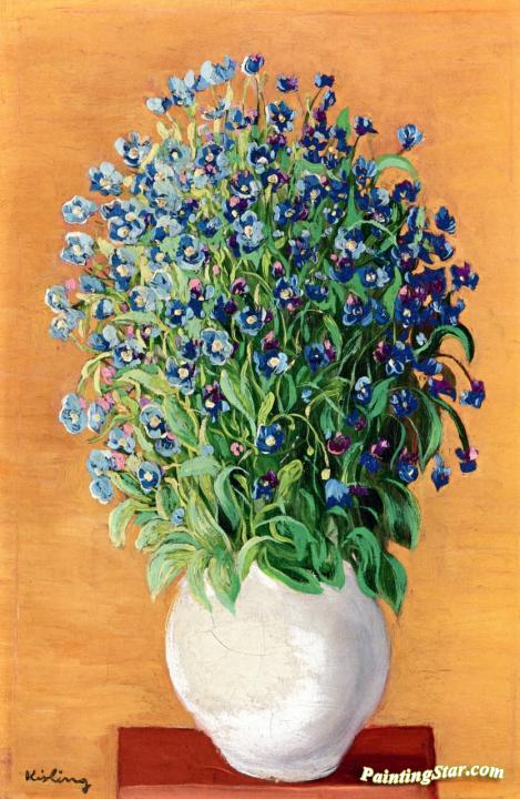 Blue Flowers in a Vase, Art Painting by Moise Kisling