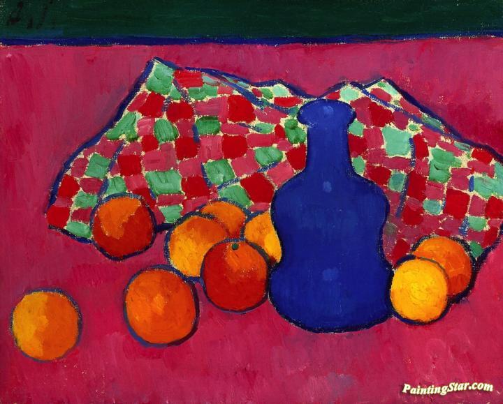 Blue Vase with Oranges, Art Painting by Alexej Jawlensky