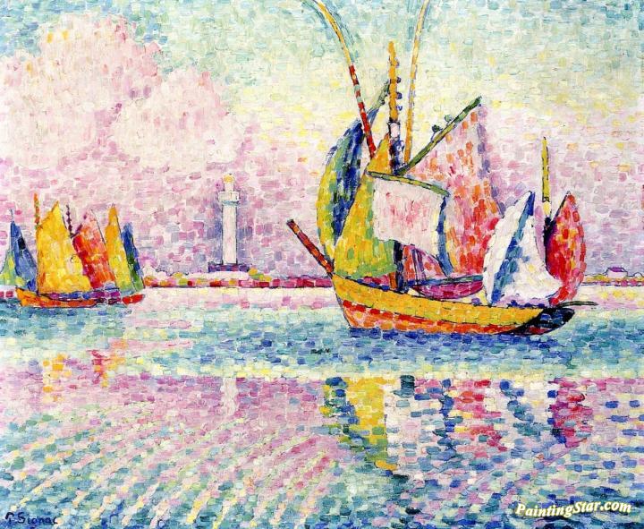 Boats at Anchor in Locmalo, Art Painting by Paul Signac