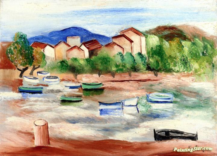 Boats at Quay, Art Painting by Moise Kisling
