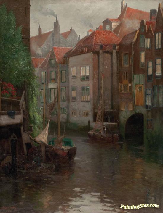 Boats in a canal, Art Painting by Adolf Kaufmann