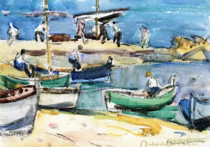 Boats in a Harbor, Art Painting by John Maclauchlan Milne