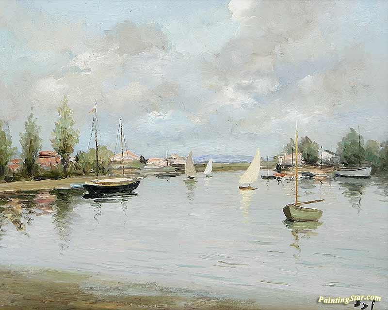 Boats In Logeo, Art Painting by Marcel Dyf