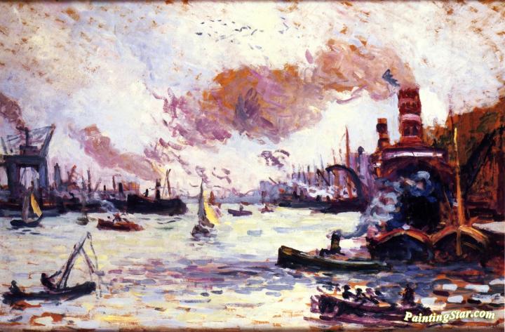 Boats in the Port of Rotterdam, Art Painting by Maximilien Luce