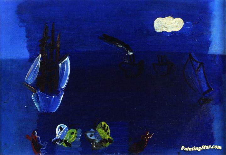 Boats, Swimmers And Butterflys, Art Painting by Raoul Dufy