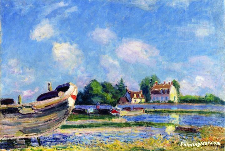 Boats under Repair at Saint-Mammès, Art Painting by Alfred Sisley