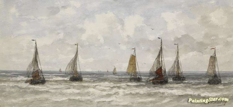 Bomschuiten In The Breakers, Art Painting by Hendrik Willem Mesdag