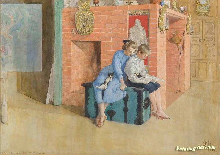 Book for three, Art Painting by Carl Larsson