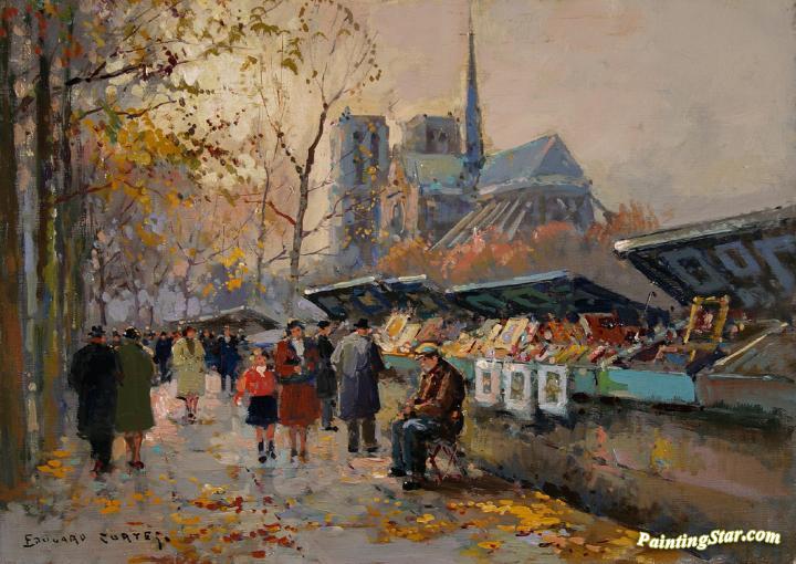 Book Sellers Along the Seine, Art Painting by Edouard Léon Cortes