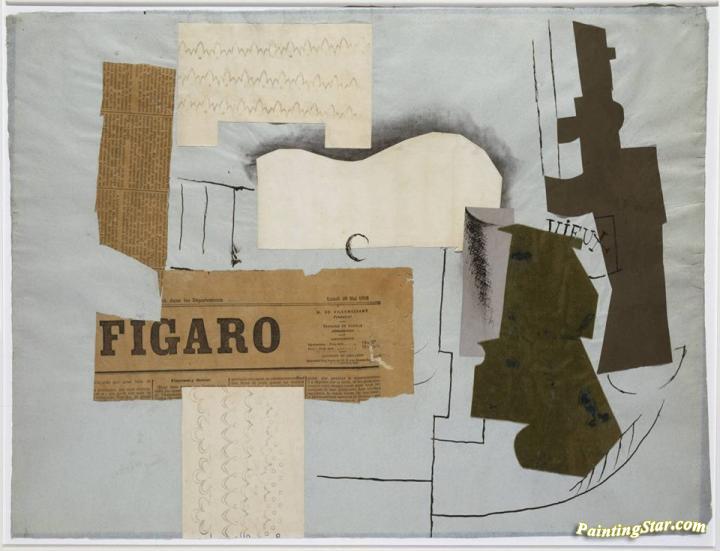 Bottle Of Vieux Marc, Glass, Guitar And Newspaper, Art Painting by Pablo Picasso