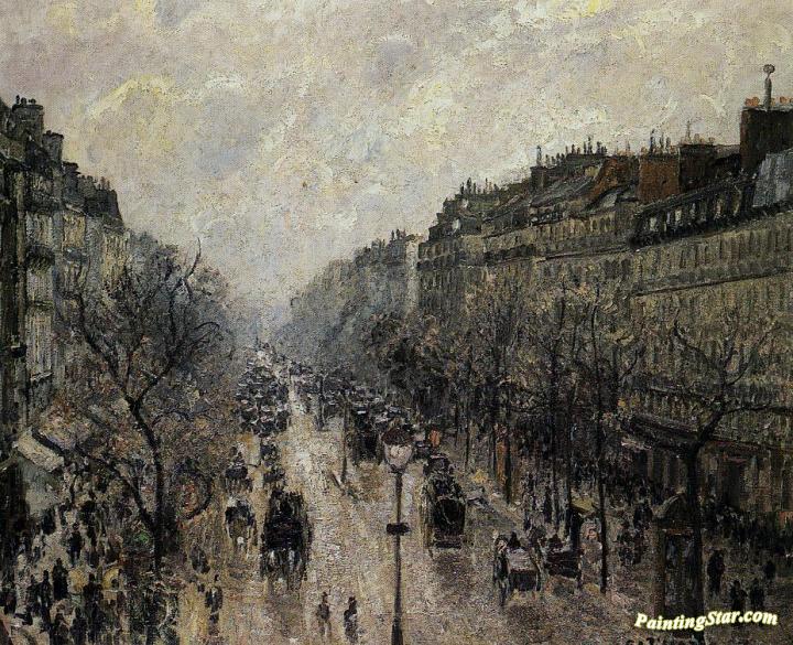 Boulevard Montmartre: Foggy Morning, Art Painting by Camille Pissarro