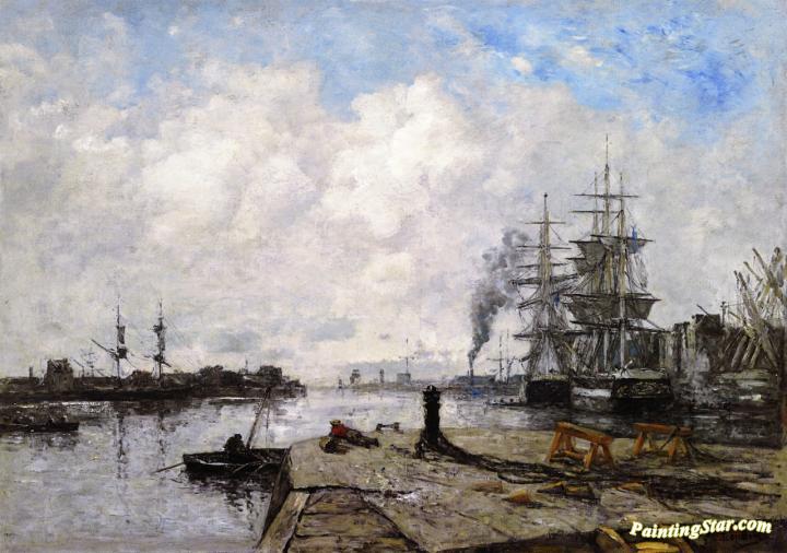 Boulogne-sur-Mer, the Harbor, the Ferry Dock, Art Painting by Eugène-Louis Boudin