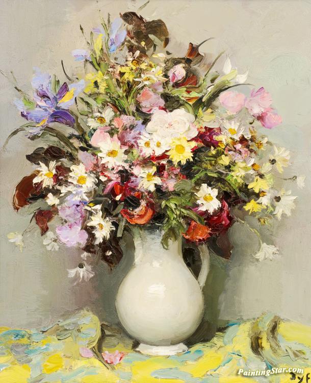 Bouquet Avec Iris Bleu, Art Painting by Marcel Dyf