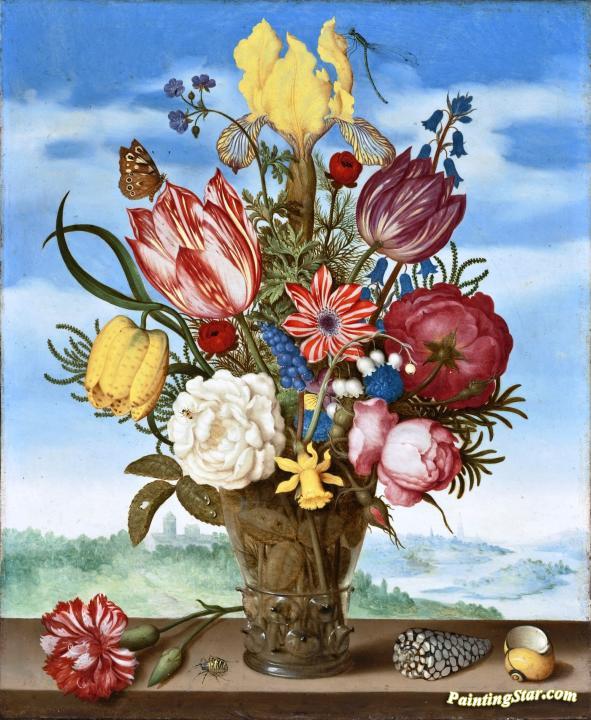 Bouquet Of Flowers On A Ledge, Art Painting by Ambrosius Bosschaert
