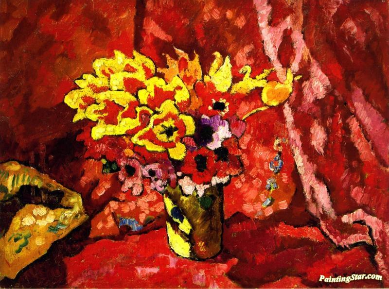 Bouquet Of Flowers On A Red Background, Art Painting by Louis Valtat