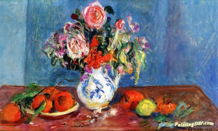 Bouquet of Flowers, Plate of Fruit, Art Painting by Charles Camoin