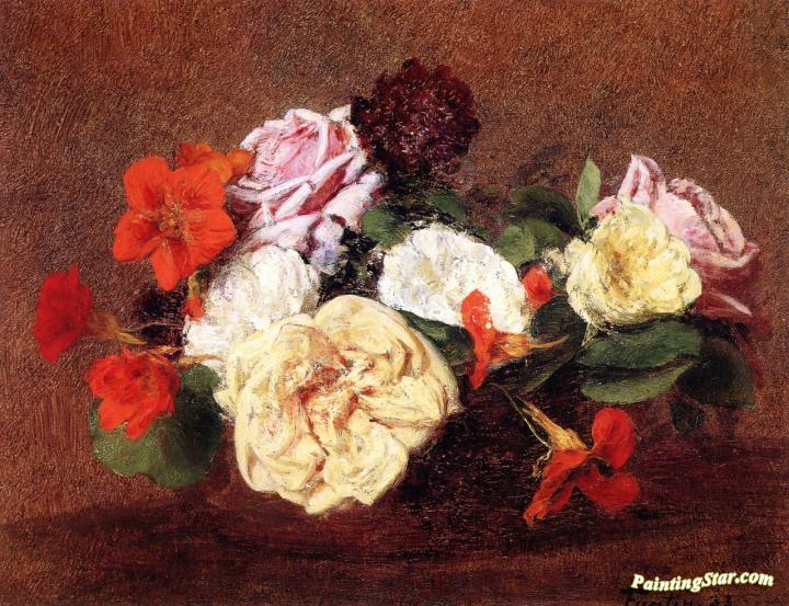 Bouquet Of Roses And Nasturtiums, Art Painting by Henri Fantin-Latour