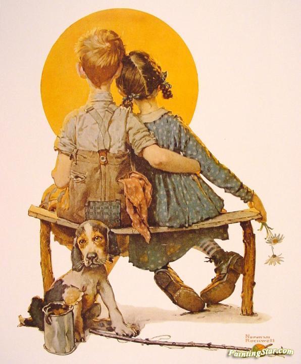 Boy And Girl Gazing At The Moon, Art Painting by Norman Rockwell