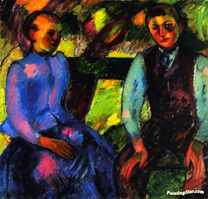 Boy And Girl On A Green Bench, Art Painting by Odon Márffy