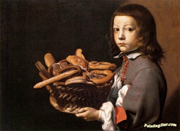Boy With A Basket Of Bread, Art Painting by Evaristo Baschenis