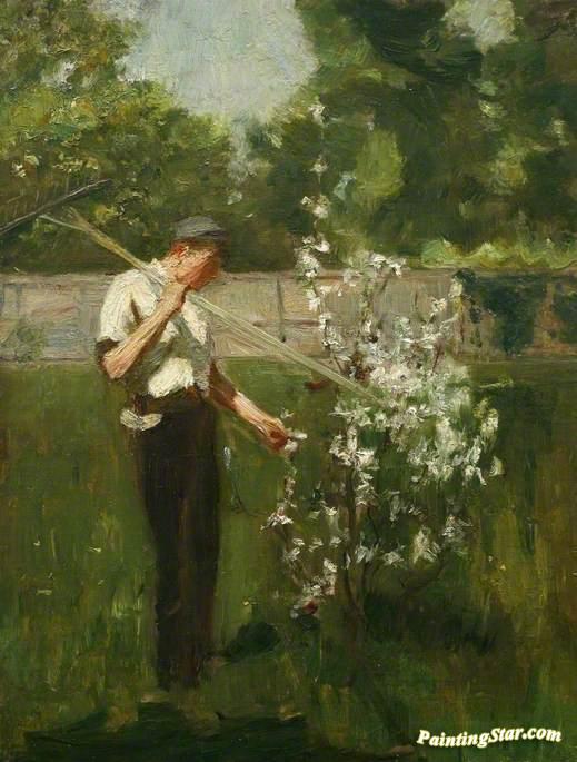 Boy with a Grass Rake, Art Painting by Henry Scott Tuke