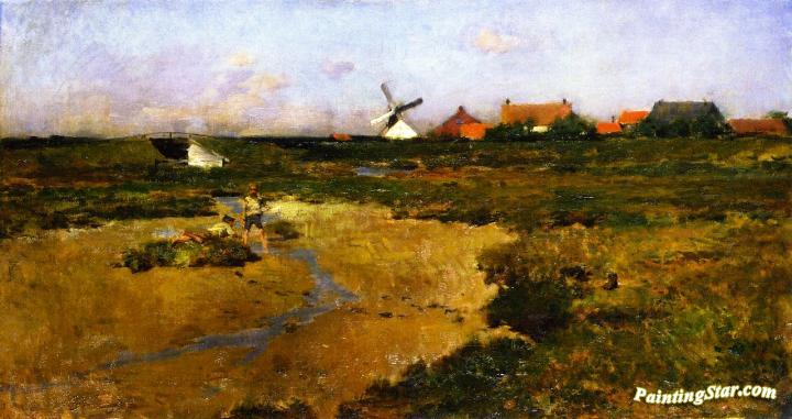 Boys Hunting Crabs, September Morning, Soffolk Coast, England, Art Painting by Willard Leroy Metcalf