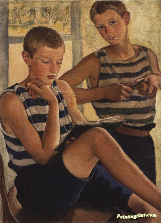 Boys in sailor's striped vests, Art Painting by Zinaida Serebriakova