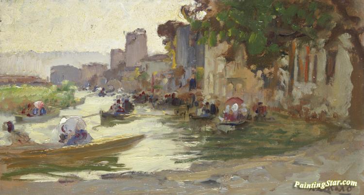Bozzetto Per Scena Di Un Matrimonio Sulle Acque Del Fiume GÖksu, Art Painting by Fausto Zonaro