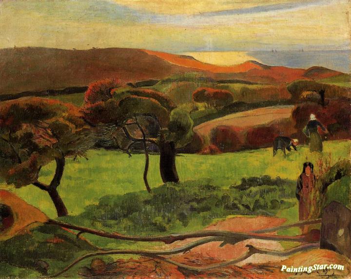 Breton Landscape - Fields by the Sea, Art Painting by Paul Gauguin