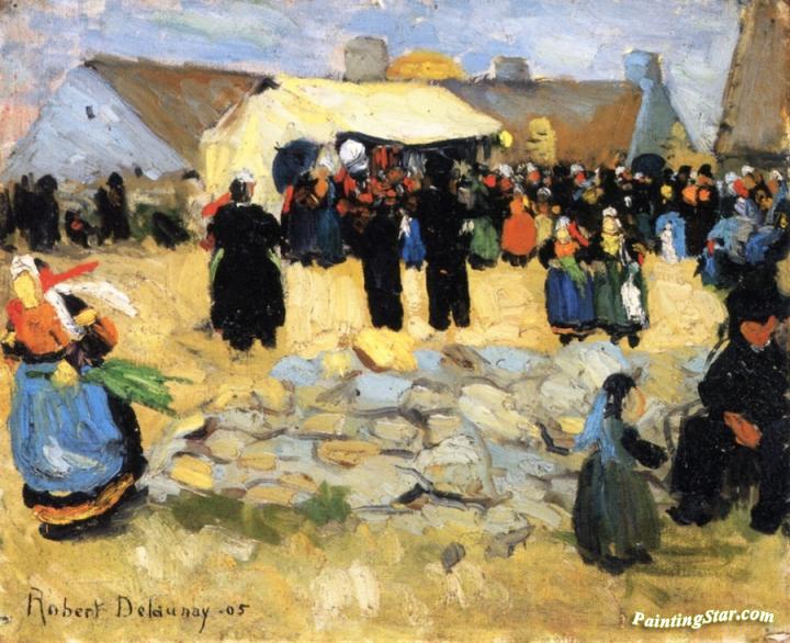Breton Market, Art Painting by Robert Delaunay
