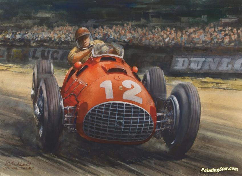 British Grand Prix - The Winning 4.5 Litre Ferrari Of Gonzales, Art Painting by Michael Wright