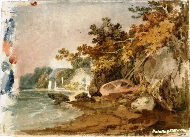 Briton Ferry, A Fisherman's Cottage and a Boat Pulled Up under a Low Cliff, Art Painting by Joseph Mallord William Turner