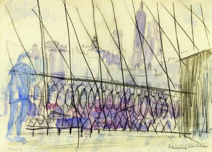 Brooklyn Bridge Series, Figure Leaning On Railing, Art Painting by John Marin